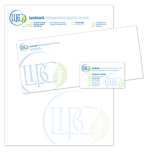 Logo, Letterhead, Envelope and Business Cards for Landmark Ind. Baptist Church, Louisville, KY