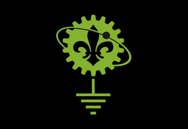 Logo for LVL1 - Louisville Hackerspace. The group is a blend of talented people from many technical fields and this logo hoped to portray this diversity - mechanical, electrical, orbital, and Louisville.