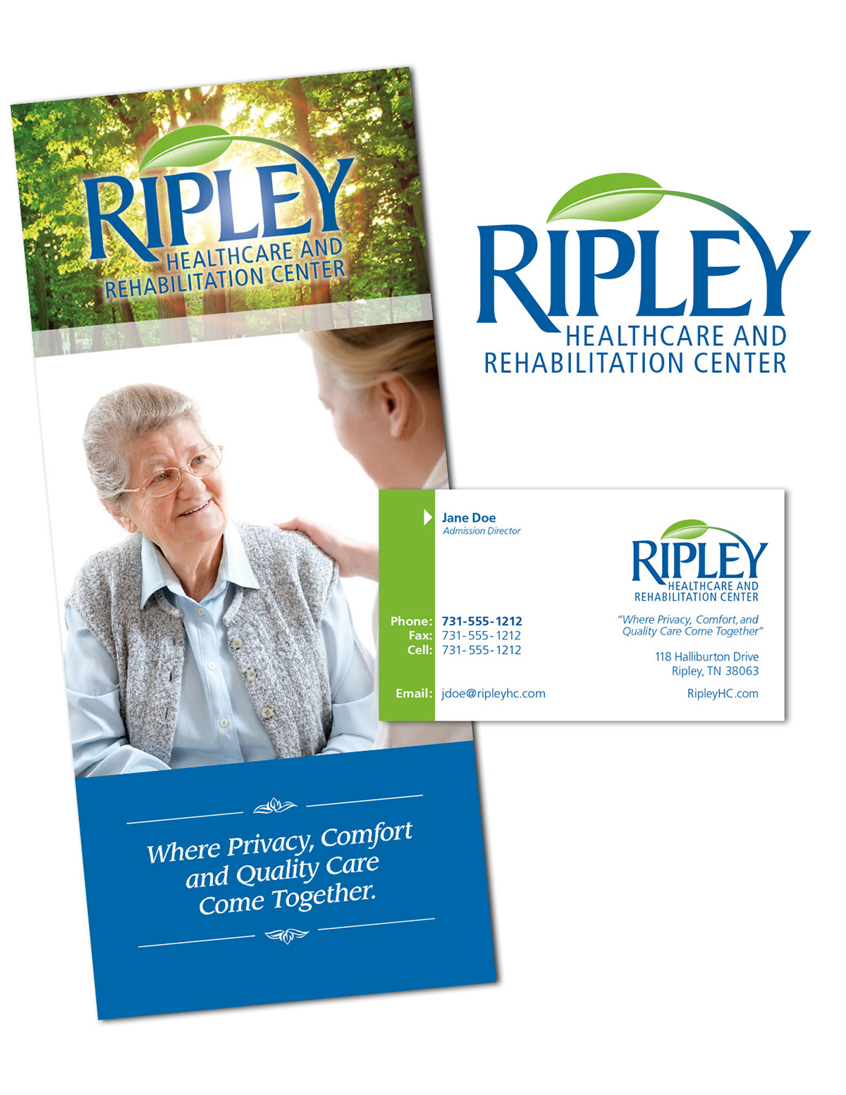 Logo and brochure for Ripley Healthcare, Ripley, Tennessee.