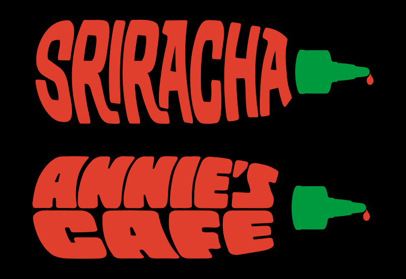 Two Sriracha bottle inspired designs. Annie Café is my favorite Vietnamese restaurant.